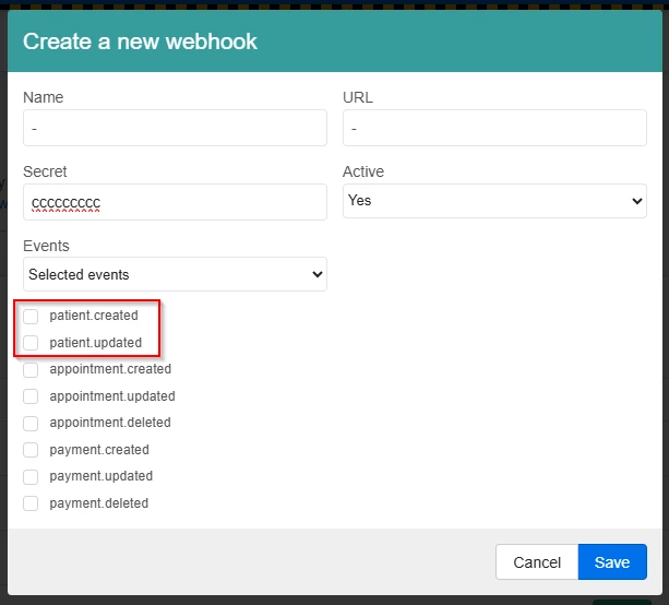 On the webhooks view, inside the sandbox env, the patient.deleted event seems to be missing.